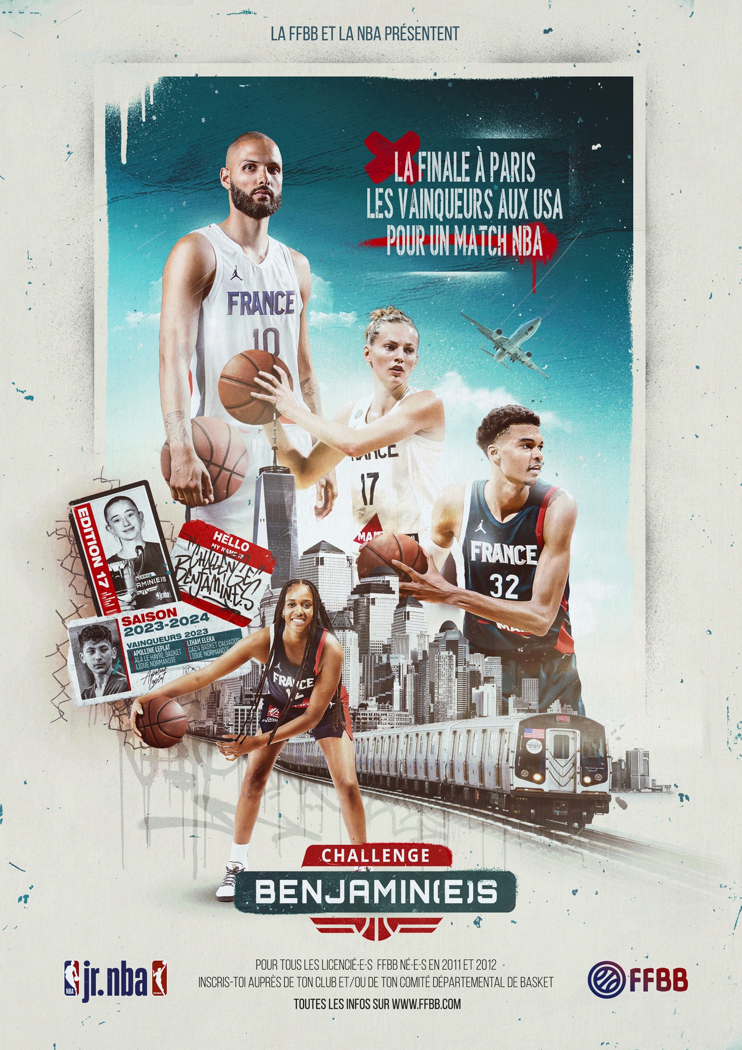 Public : Tous les licenciés de la catégorie U13 du Val d’Oise. Concept : Concours individuels sur quatre ateliers. Les trois meilleurs U12 et U13, masculins et féminines, seront qualifiés à la phase régionale qui permettra, à terme, d’aller à Paris Bercy lors des phases finales nationales. Les vainqueurs, fille et garçon, auront la chance de vivre « une expérience NBA » offerte par la FFBB. Challenge Benjamin(e)s – Epreuve Céline Dumerc Challenge Benjamin(e)s – Epreuve Boris Diaw Challenge Benjamin(e)s – Epreuve Sandrine Gruda Challenge Benjamin(e)s – Epreuve Epreuve Tony Parker |
