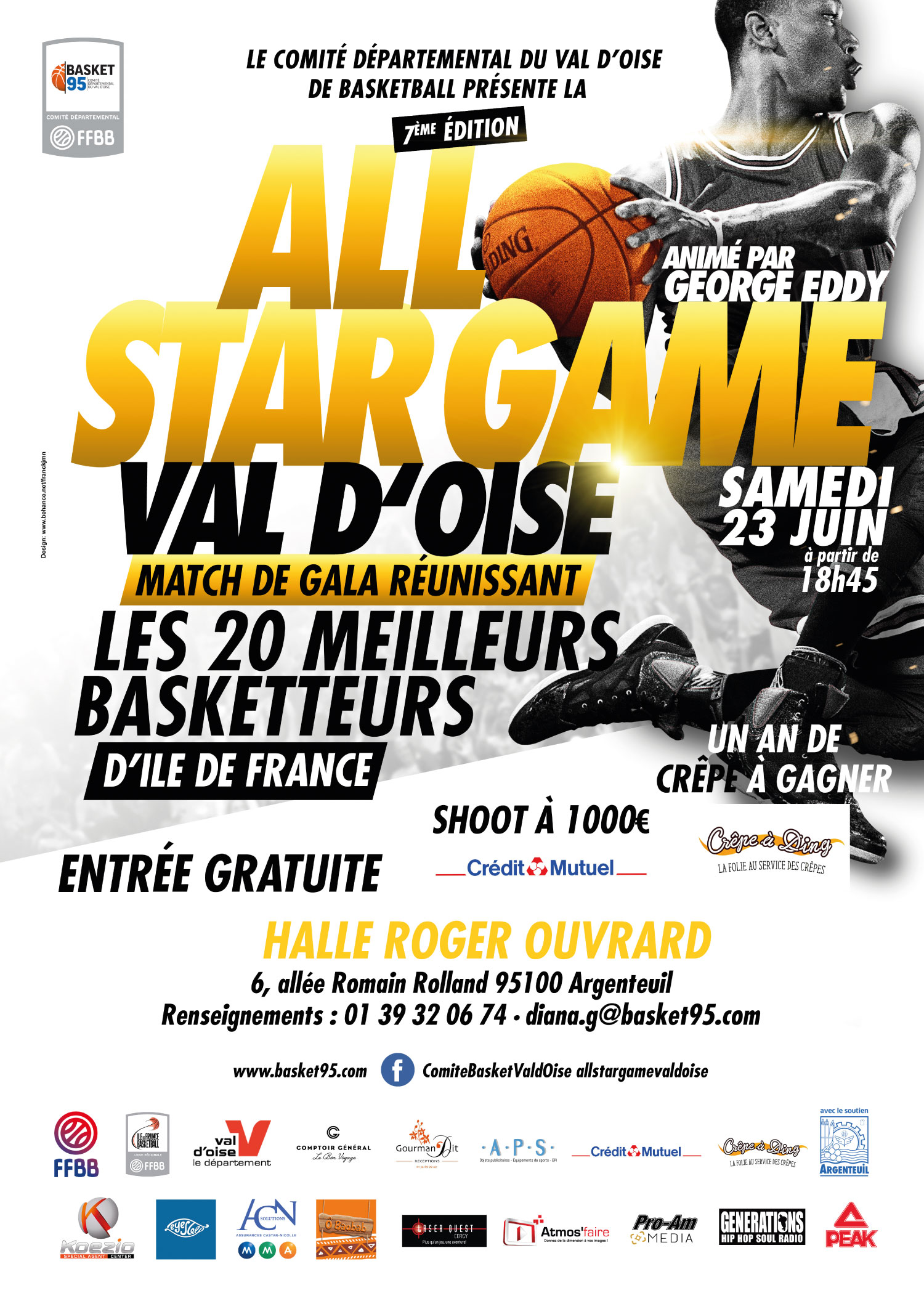 Public : Tout public Concept : Créé pour la première fois en mai 2012, le « All Star Game Val d’Oise » (ASGVO) consiste à réunir les 20 meilleurs basketteurs masculins de la région Ile de France, évoluant en Nationale 1 et Nationale 2, le temps d’un match de gala. A ce jour, le ASGVO est le 1er All Star Game de France pour les nationaux. Les joueurs sont choisis par les coachs des clubs de la région après vote de ces derniers et par le public. Les 2 coachs sont choisis parmi ceux d’Ile de France selon leur classement dans leur championnat. Chaque année, nous accueillons près de 1 200 spectateurs. Le show est animé par la radio nationale Générations 88.2 et le concours de dunk par la chaine nationale Trace Sport Stars. Contact : diana.g@basket95.com Facebook : www.facebook.com/allstargamevaldoise |